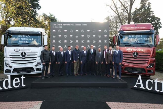 Kılıç Grup, son olarak 28 Ekim 2022 tarihinde İstanbul’da düzenlenen bir törenle 150 adet Mercedes-Benz Actros çekiciyi teslim aldı. Şirket, Mercedes-Benz Türk Aksaray Kamyon Fabrikası’nda üretilen yeni araçlarını konteyner, demir çelik ve dökme yük nakliyesi alanlarında kullanacak.