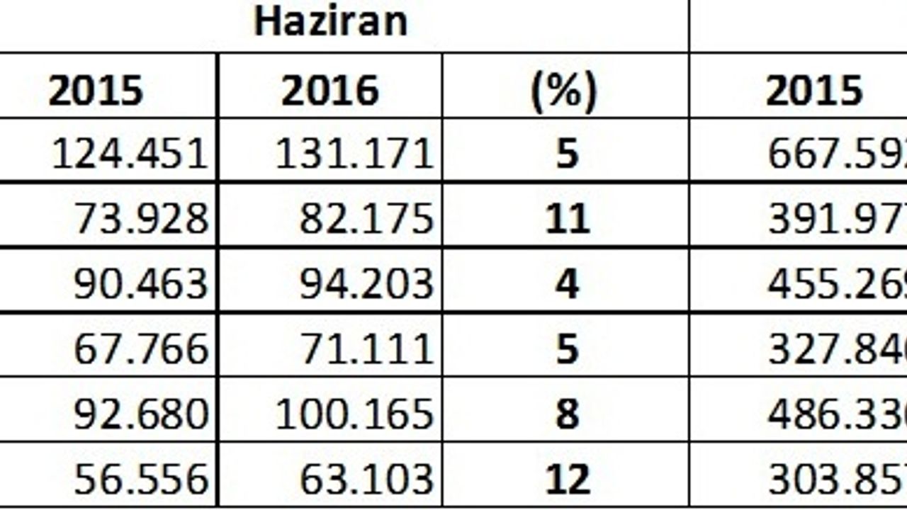 2016 yılı Ocak-Haziran döneminde, önceki yılın aynı dönemine göre yüzde 9 artış ile toplam 725 bin adet taşıt aracı üretildi, otomobil üretimi ise yüzde 13 artarak 441 bin adet düzeyinde gerçekleşti.