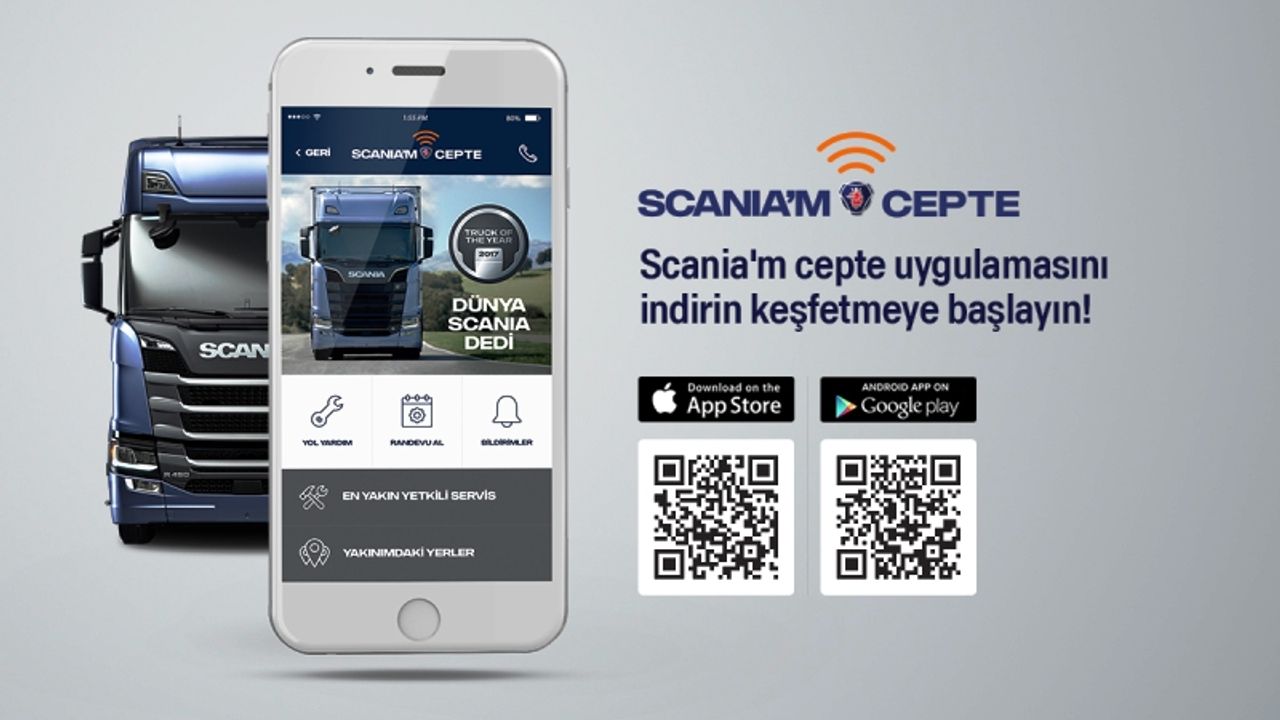 Scania, tüm teknolojik yenilikleri yakından takip ederek müşterilerine zaman kazandıracak uygulamaları ile hizmet kalitesini arttırmaya devam ediyor. IOS ve Android işletim sistemine sahip tüm akıllı telefonlardan ücretsiz olarak indirilen Scania’m Cepte ile kullanıcıların hayatları oldukça kolaylaşıyor.