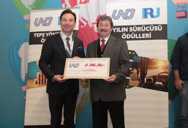 IRU-UND Profesyonel Sürücü Onur Nişanı Ödülleri kapsamında 53 sürücüye başarı ödülü verildi. Birincilik ödülünü Trans Birdal Uluslararası Nakliyat’tan Recep Uzungünay kazandı. Uzungünay’a 10 bin TL değerindeki para ödülü UND İkinci Başkanı Şerafettin Aras tarafından takdim edildi.