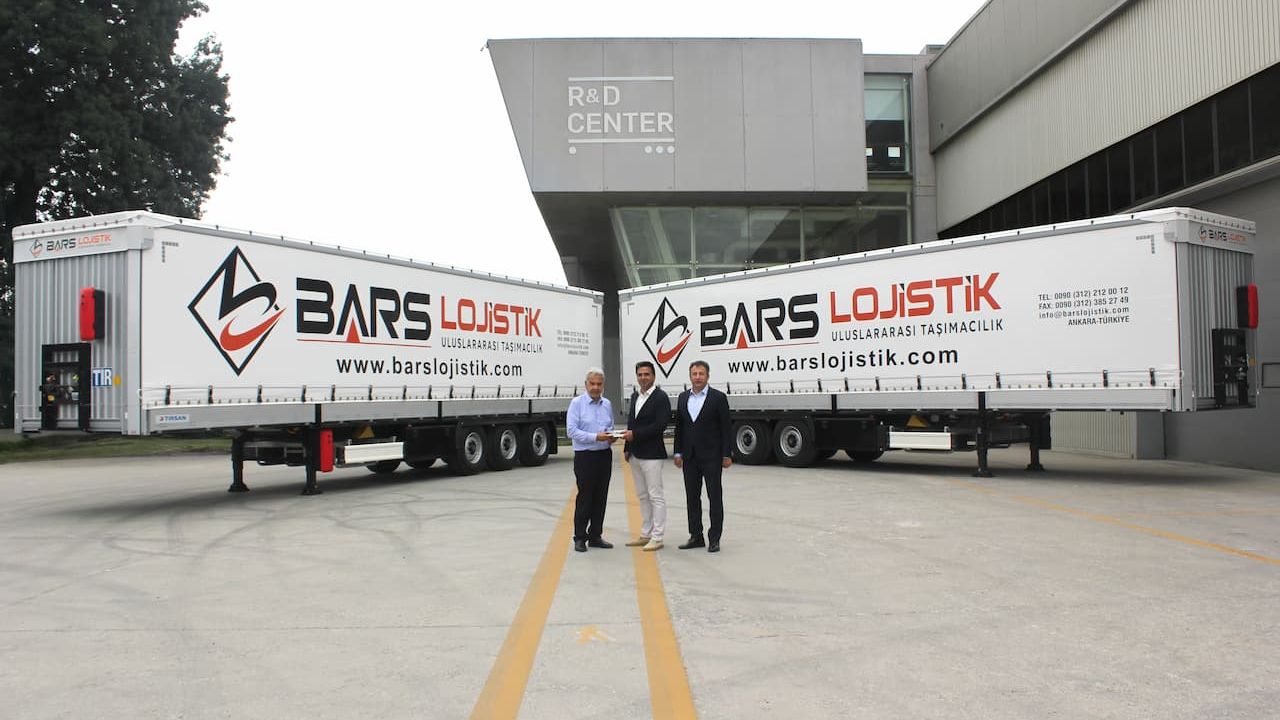 Bars Lojistik yeni araçlarını Tırsan’ın Adapazarı’nda bulunan Mega Üretim Kampüsü’nde düzenlenen törenle teslim aldı. Tırsan Treyler Yönetim Kurulu Başkanı Çetin Nuhoğlu’nun ev sahipliğinde gerçekleşen törende; Bars Lojistik Yönetim Kurulu Başkanı Uğur Deveci ve Tırsan Treyler Satış İcra Kurulu Üyesi Özgür Ayçiçek yer aldı.