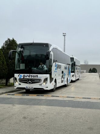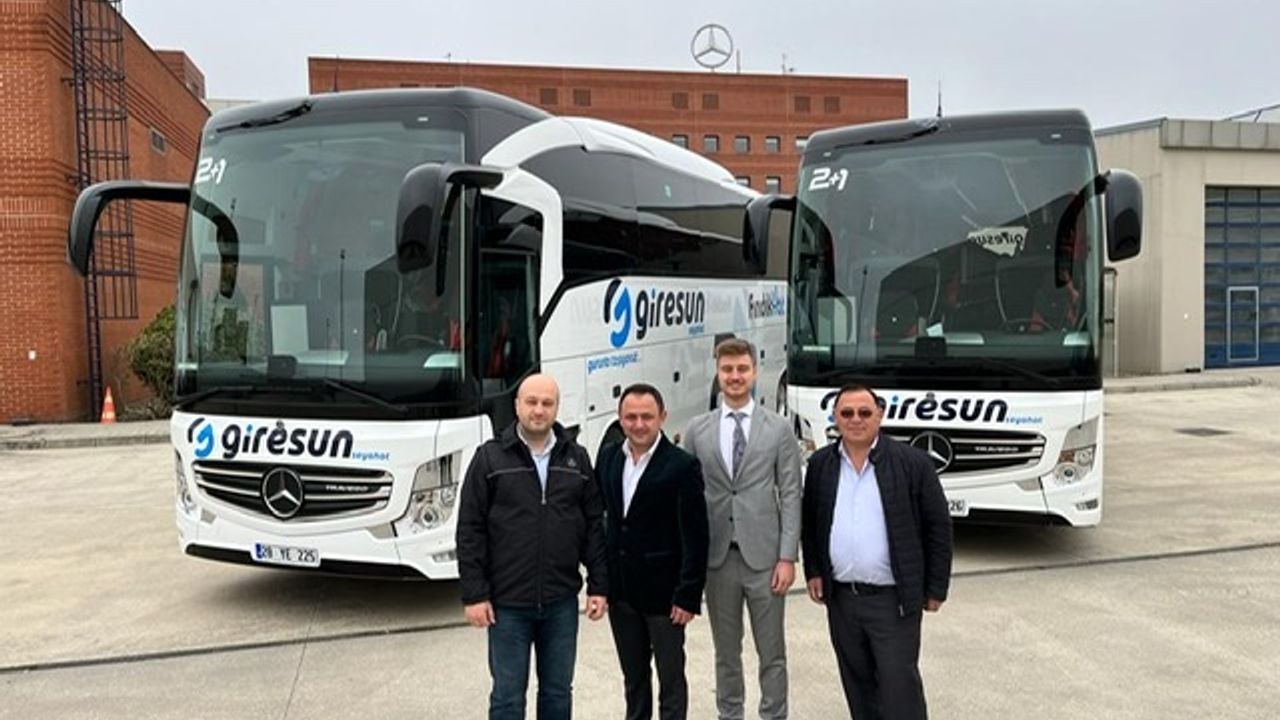 Mercedes-Benz Türk Otobüs Filo Satış Koordinatörü Kadir Sargın ve Hassoy Motorlu Vasıtalar Otobüs Satış Müdürü Cenk Soydan tarafından, Giresun Seyahat firma ortakları Mustafa Toraman ve Nurettin Tuzcu’ya teslim edildi.