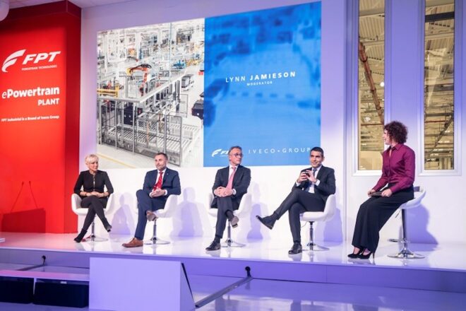 FPT Endüstriyel’in yeni tesisi ve Iveco Grubunun iş vizyonu; Iveco Grup Güç Aktarma Organları Departmanı Başkanı Sylvain Blaise, Iveco Grup Otobüs Departmanı Başkanı Domenico Nucera, Iveco Grup Çekici Departmanı Başkanı Luca Sra ve Iveco Grup Operasyon Direktörü Annalisa Stupenengo’nun katıldığı bir forumda ele alındı.