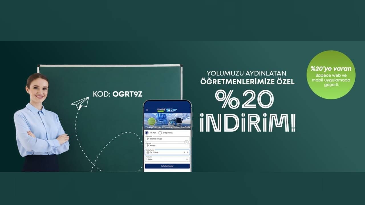 Yolumuzu aydınlatan öğretmenlere %20 indirim Kâmil Koç, çalışanlara yönelik yıl boyu sürecek olan özel indirim projelerinin ilk adımını ise geleceğimizi inşa eden öğretmenler için attı. “Yolumuzu Aydınlatan Öğretmenlerimize Bir Teşekkür de Bizden” sloganıyla hayata geçirilen kampanya ile öğretmenlere özel, 20 Mayıs tarihine kadar dijital kanallar üzerinden yapılacak bilet alımlarında %20’ye varan indirim sunuyor. Öğretmenler, Kâmil Koç Mobil Uygulaması ve www.flixbus.com.tr üzerinden bilet satın alırken OGRT9Z kodunu kullanarak kampanyadan faydalanabiliyor. Türkiye genelinde tüm hatlarda geçerli olan uygulama, öğretmenlere daha kaliteli, konforlu ve erişilebilir bir seyahat deneyimi sunmayı amaçlıyor.