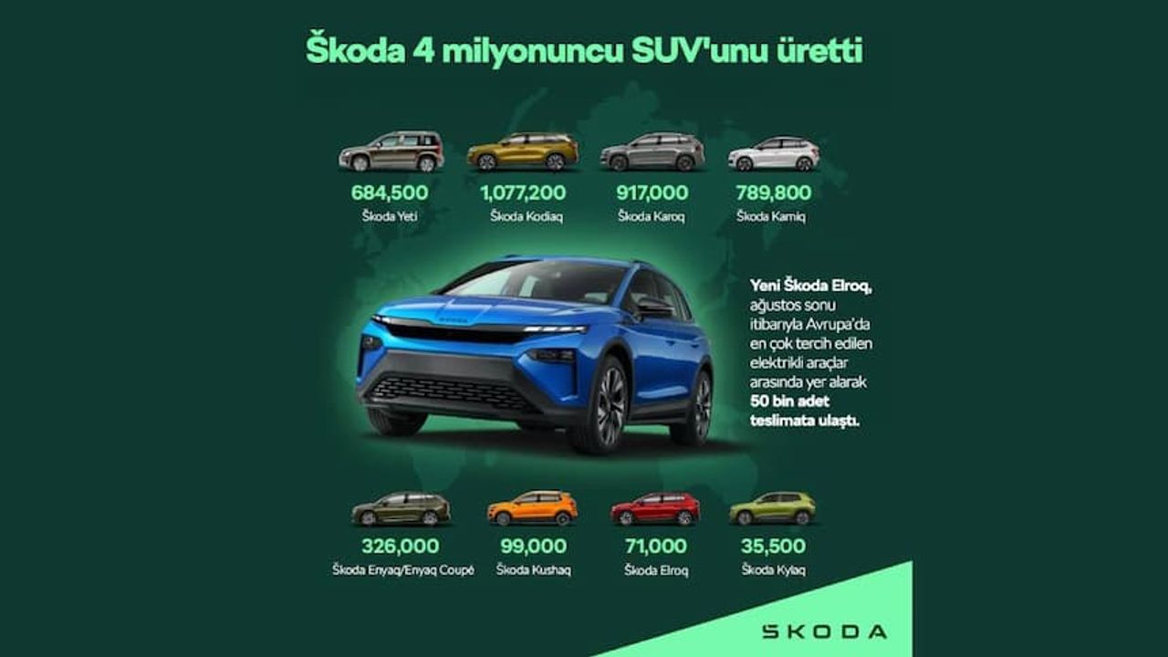 Škoda, Türkiye pazarında kompakt SUV segmentindeki Kamiq ve Karoq modellerinin yanı sıra, geniş iç hacmi ve yedi koltuk seçeneğiyle öne çıkan Kodiaq, tamamen elektrikli yeni nesil SUV modelleri Elroq ve Enyaq ile birlikte farklı kullanıcı ihtiyaçlarına hitap eden geniş bir ürün gamına sahip. Daha önce bir sedan pazarı olarak konumlanan ve tercihlerin ağırlıklı olarak sedan modeller olduğu Türkiye’de de küresel pazarlara benzer bir trend dikkat çekiyor. ODMD verilerine göre 2025’in ilk 8 ayında SUV modeller yüzde 62’nin üzerinde pazar payına sahip oldu. Škoda’nın ise Türkiye’de Ocak-Ağustos döneminde satışlarının yüzde 41’ini SUV modelleri oluşturdu.