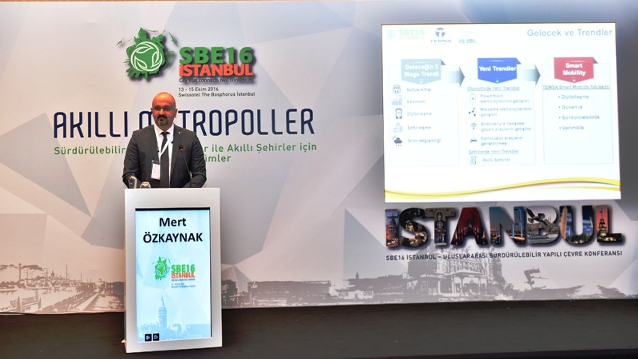Kamu, Üniversite temsilcileri ve TEMSA ’nın katıldığı Akıllı Ulaşım oturumunda konuşan TEMSA İnovasyon ve Ürün Müdürü Mert Umut Özkaynak “TEMSA hayata geçirdiği Smart Mobility Vizyonu ile geliştirdiği teknoloji programları; emisyon salınımı “0” olan elektrikli araçlar, yakıt tüketimini ve emisyon salınımı %10 oranında azaltan akıllı araçlar, trafik sıkışıklığını %20, trafik kazalarını %25 oranında azaltan akıllı trafik uygulamaları ve çevreye dost akıllı fabrikalar ile Akıllı Ulaşım Sistemleri(AUS)’
