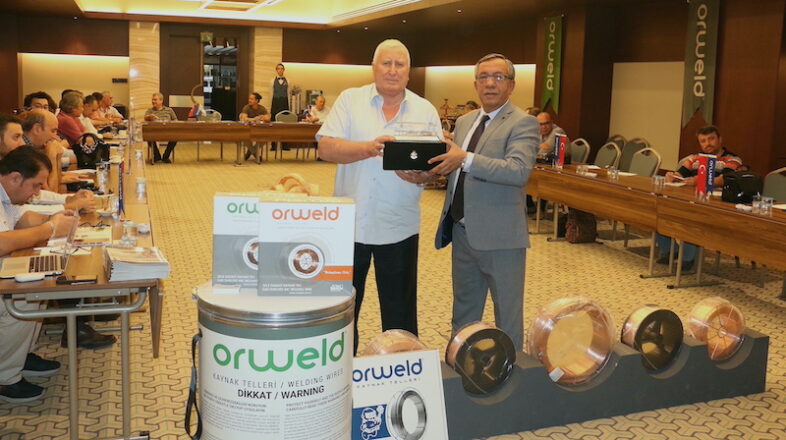 TREDER Başkanı Yalçın Şentürk, ziyaret kapsamında Orweld Kaynak Telleri Yönetim Kurulu Başkanı Mustafa Oral’a plaket verdi.
